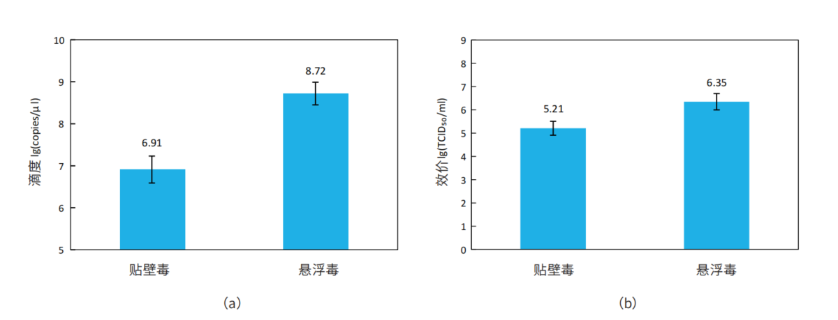 使用Proli-S001S培养悬浮PK15,相比原先贴壁工艺,不论是(a)荧光定量PCR或(b)TCID50检测,都显示产毒滴度大幅提升。