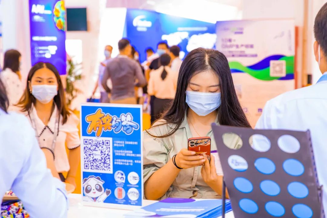 另外,展位现场还组织了有奖问答活动和IP巡游,胖达博士的周边小礼品以及人偶形象获得了大家广泛喜爱,吸引不少参会代表前来展台参加现场活动。