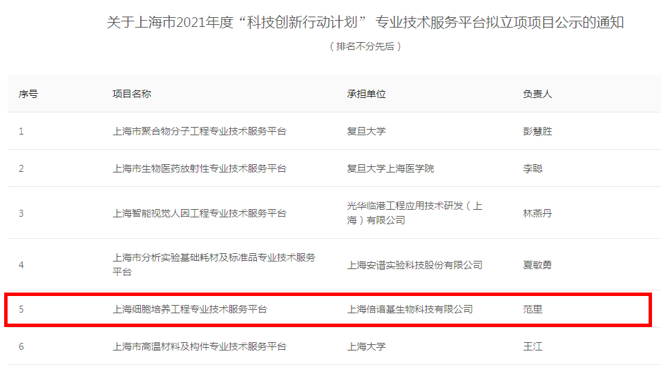 日前,由倍谙基承担的“上海细胞培养工程专业技术服务平台”项目成功通过上海市科委2021年度“科技创新行动计划”专业技术服务平台建设立项批准。“科技创新行动计划”专业技术服务平台项目的设立,旨在整合上海各类科技资源、降低创新成本、促进创新驱动发展,为创新创业提供信息共享、研发设计、联合攻关、测试验证、中试放大等特色鲜明的专业技术服务。