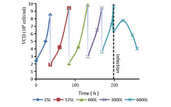 适用于多种动物细胞大规模、高密度、悬浮培养过程的个性化无血清/无蛋白培养基的开发与优化。该技术成果成功应用于国内多家抗体类药物和病毒疫苗生产企业的中试开发及产业化,细胞比生长速率、最大活细胞密度以及抗体浓度、病毒滴度等指标均高于同类进口无血清培养基。