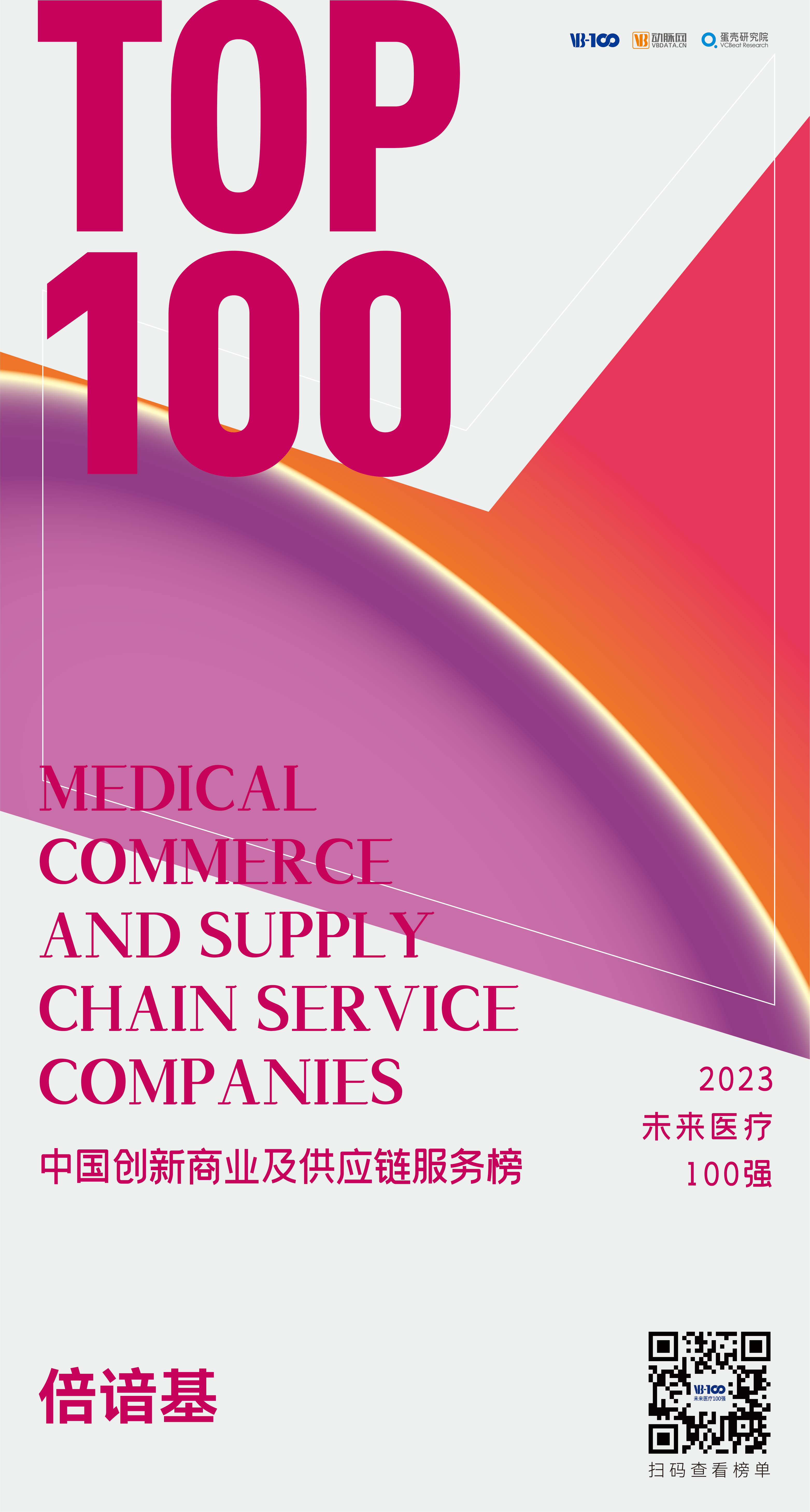 “Top 100 Medical Commerce and Supply Chain Service Companies” is the first domestic innovative healthcare list for non-listed companies launched by VB100, VBData and VCBeat Research. It aims to select Chinese innovative healthcare players that truly represent the future of healthcare, discover the core strengths of China's future healthcare industry, and promote the process of innovation and transformation the healthcare industry.