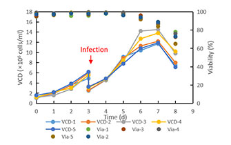通过设计和优化培养基的营养组成、流加或灌注策略,调控细胞的生理状态和代谢网络,从而提高营养物代谢和能量利用率。与批培养或原生产工艺相比,经倍谙基优化后的工艺中细胞密度显著提高,培养活性维持时间大幅延长,产物浓度、产量和经济性可得到显著提高。